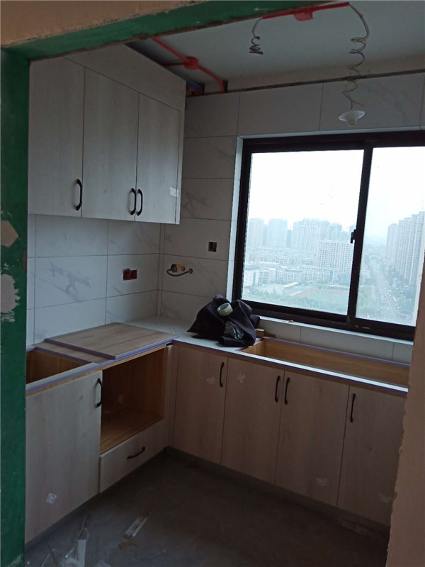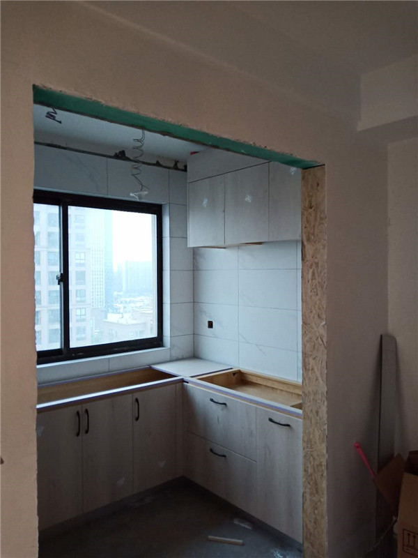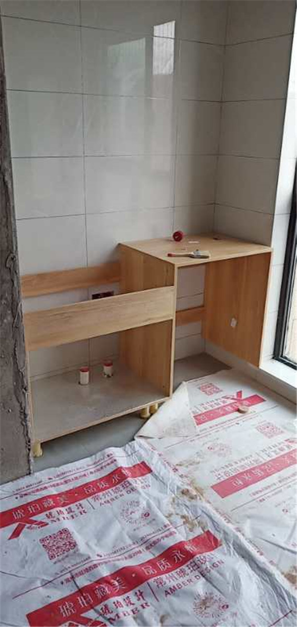 柜子已經(jīng)安裝好了,等著臺(tái)面安裝