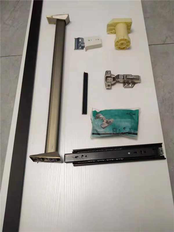 五金配件:ABS尼龍柜腳,海蒂詩導軌,諾米鉸鏈等,高配置五金配上高顏值的柜子整體效果肯定很贊,期待后期的安裝效果吧!