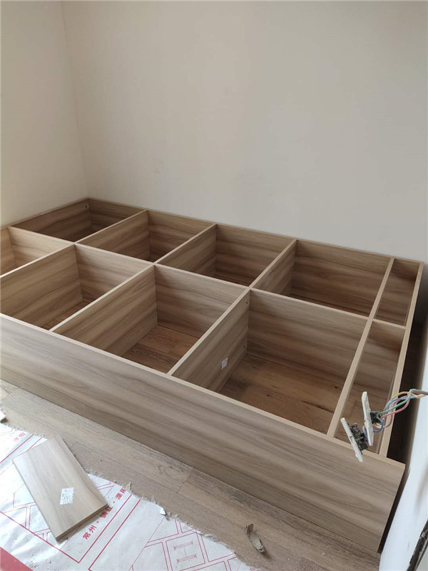 開始制作啦!專業(yè)設(shè)備裁板,沒有爆邊。板材使用平安樹實木多層板E0級制作,有高級的藍(lán)光防偽標(biāo)識哦