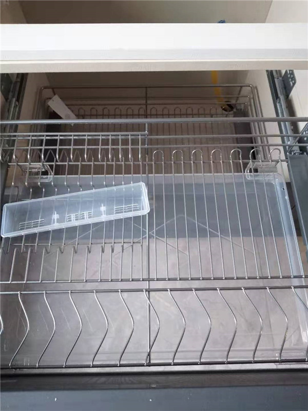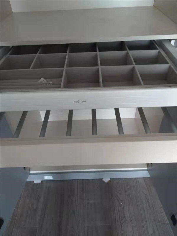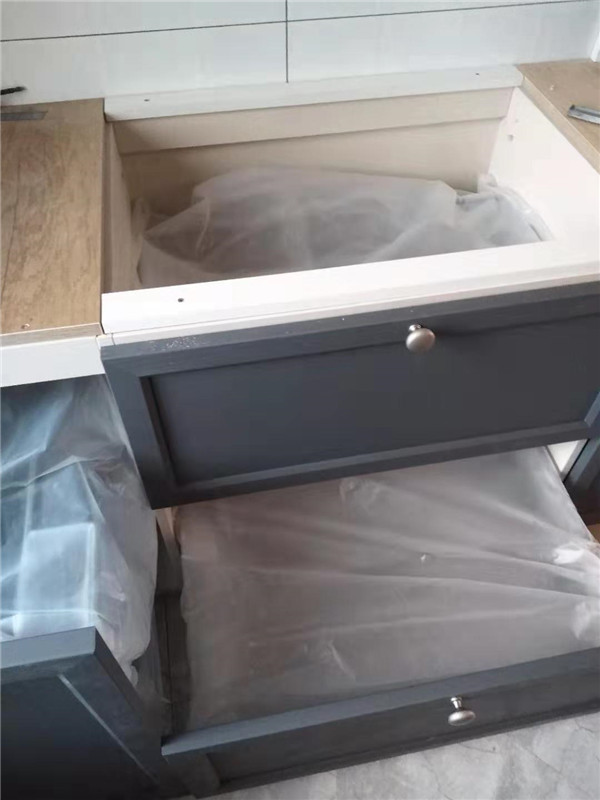 孔塞、防塵角配上更美觀,方便角落的打掃,廚房拉籃都也都用塑料膜保護(hù)起來(lái)了,防止灰塵進(jìn)入影響導(dǎo)軌的拉伸。