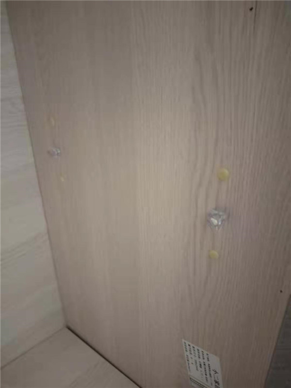 每塊板上都貼有小標(biāo)簽,方便后期安裝師傅安裝,封邊條上都帶有“優(yōu)端”logo的哦!方便后期售后。打孔也安排上咯!