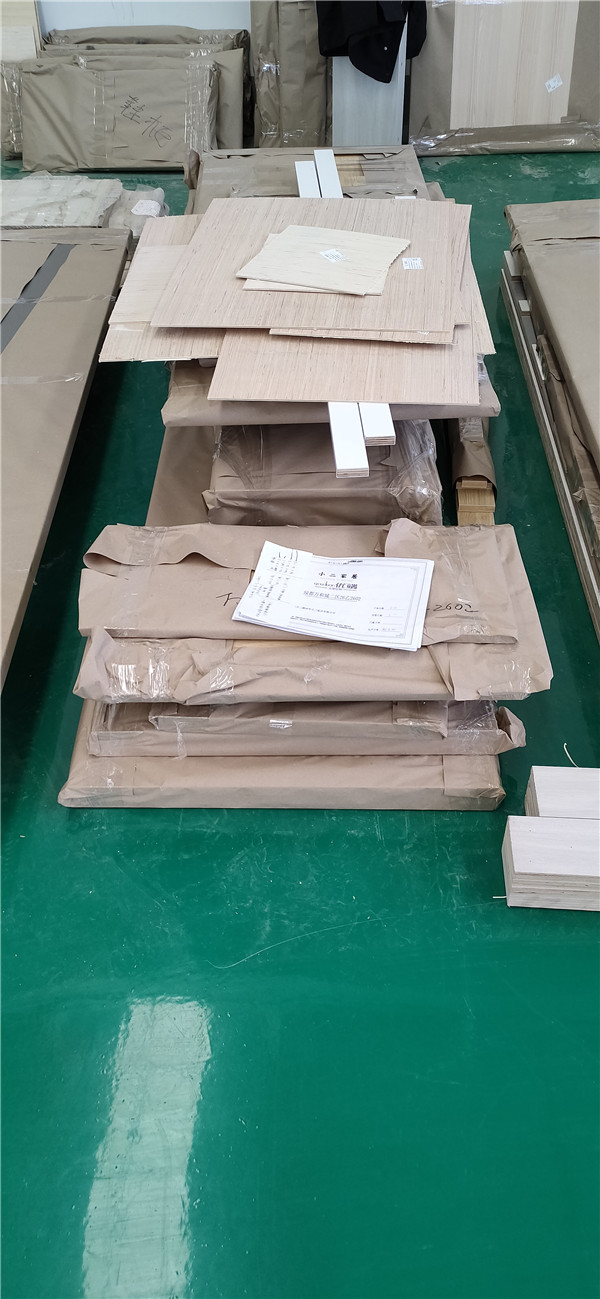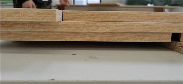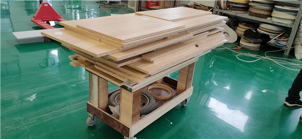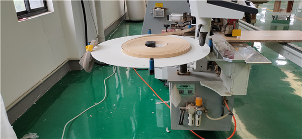 開始封邊啦,封邊采用法國波士熱熔顆粒膠,設備溫度達到200°C封出來的邊牢固,沒有爆邊,完美無瑕。每塊板上都貼有小標簽,