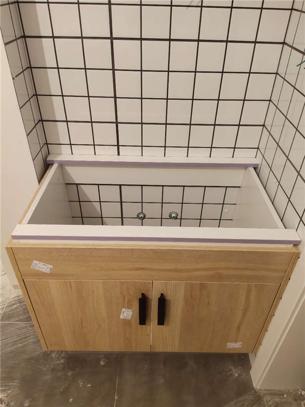 臺面安裝完畢啦,臺面下面還鋪有一層1.8公分厚的臺墊板,可以增加受力面積,臺面不容易斷裂。