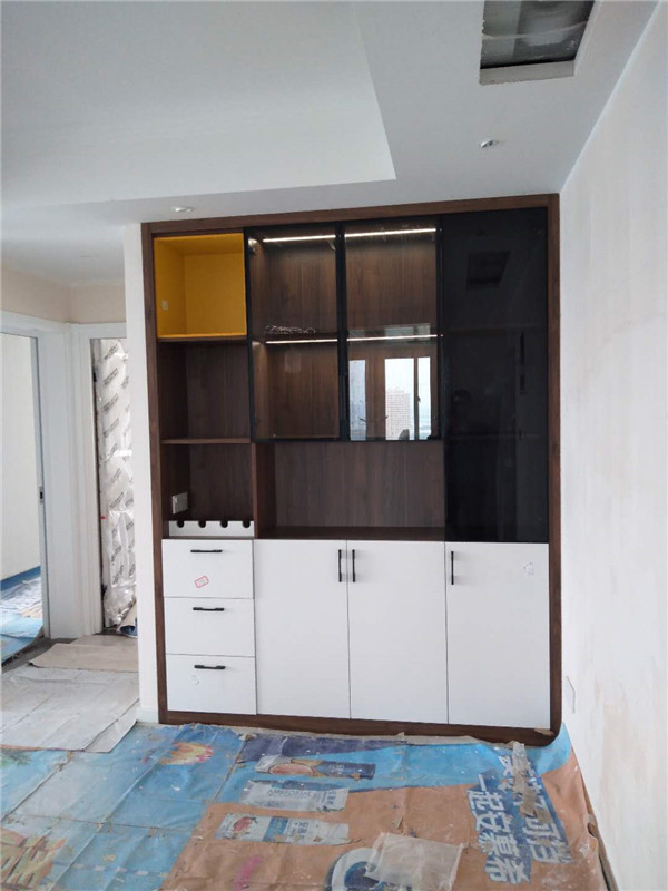 【小二跟單2864】御景花苑,晶鋼門柜門加實(shí)木多層櫥柜餐邊柜,安裝完畢