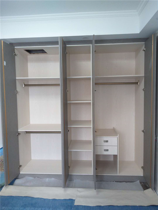 高顏值的柜子當(dāng)然要搭配高品質(zhì)的五金啦:海蒂詩(shī)導(dǎo)軌,諾米鉸鏈,索菲亞掛衣架,門后還有穿衣鏡,可以美美的穿搭。