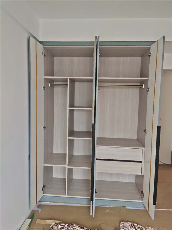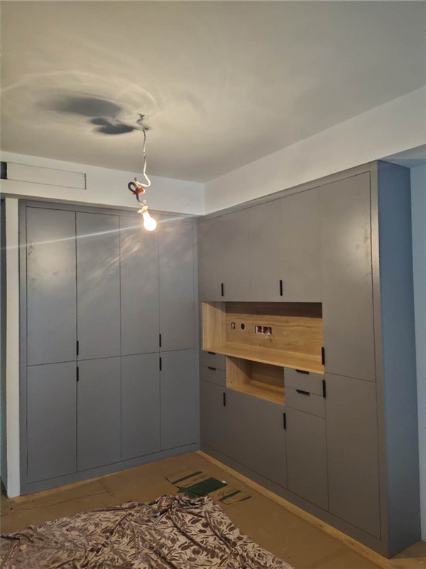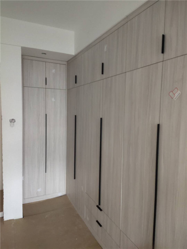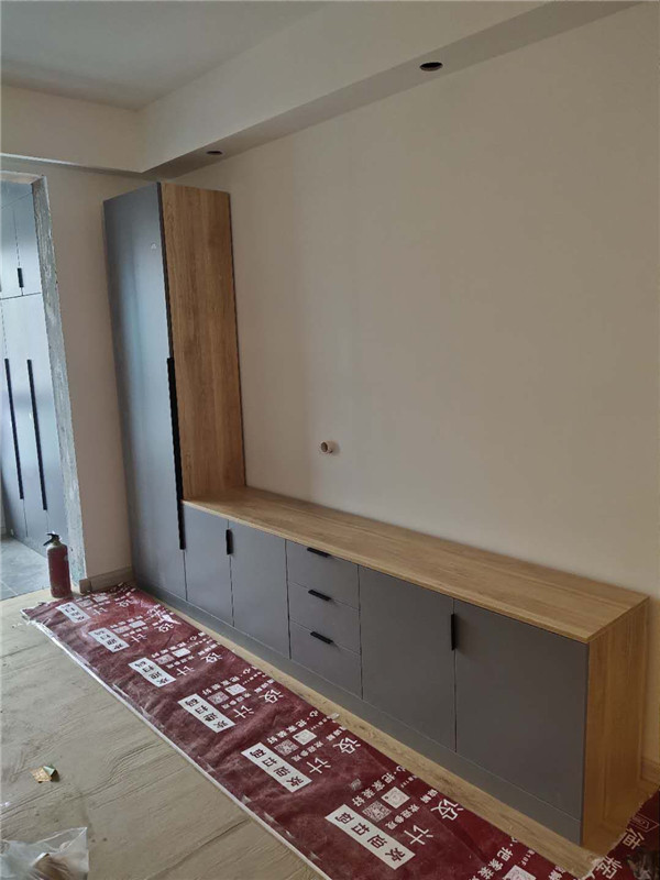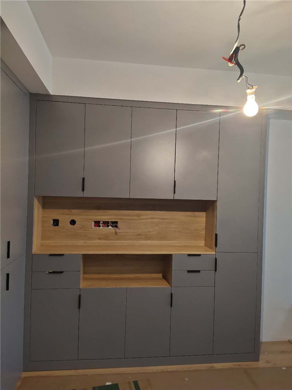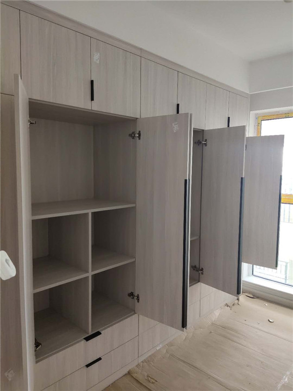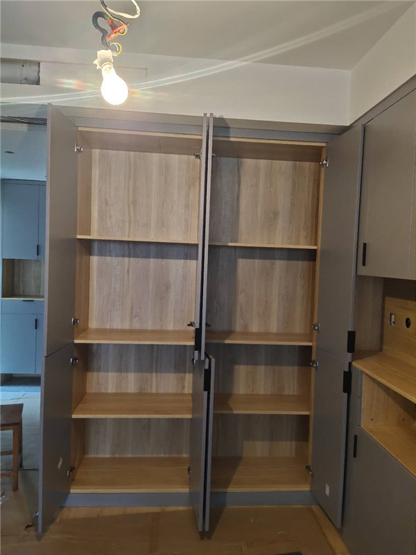 經(jīng)過(guò)幾天的努力柜體全部拼裝完畢,固定起來(lái)了。業(yè)主家柜體采用的都是淺色系,看上去清爽干凈。