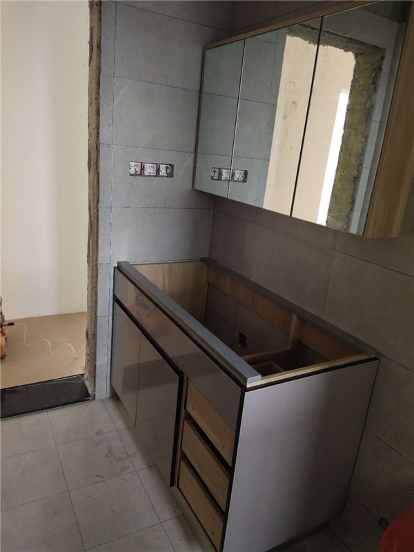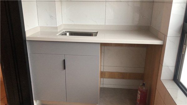 、灶具、浴柜臺(tái)盆放置在現(xiàn)場(chǎng),后期臺(tái)面安裝需用到。柜子安裝好后進(jìn)入臺(tái)面測(cè)量環(huán)節(jié),臺(tái)面量完后一個(gè)星期內(nèi)送貨并安裝。