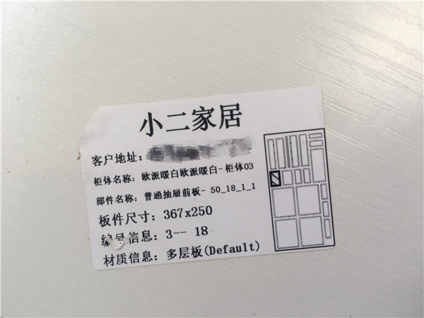 我家不管大小板都是四面封邊哦!每塊板上都貼有小標(biāo)簽,方便后期安裝師傅安裝。