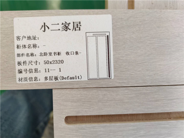 我家不管大小板都是四面封邊哦!每塊板上都貼有小標(biāo)簽,方便后期安裝師傅安裝。