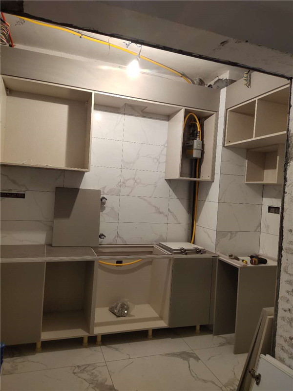 【小二跟單2867】寶龍國(guó)家花園1期,雙飾面柜門(mén)加實(shí)木多層板柜體櫥柜等,安裝中