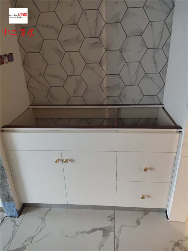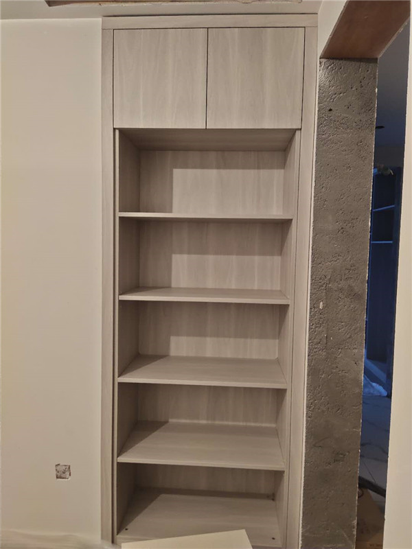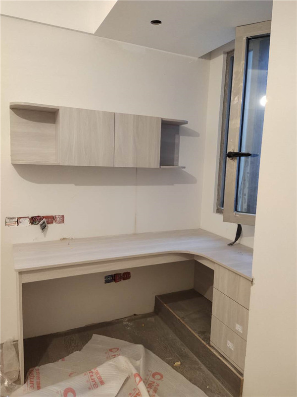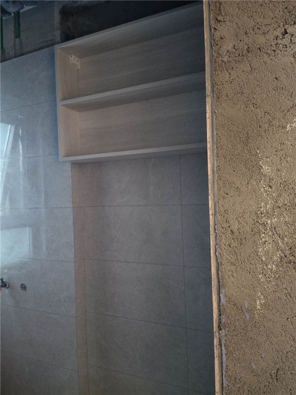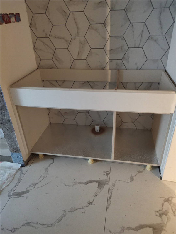 我們的柜體靠墻部分都是用的插槽的背板,背板離墻面距離1.2公分,防止后期使用時(shí)間長(zhǎng)柜體發(fā)霉。