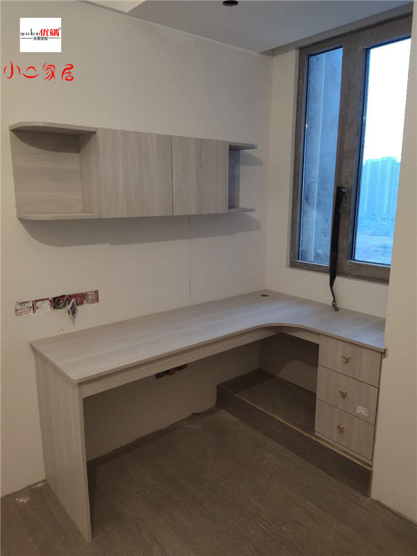 柜體基本拼裝完畢了,鞋柜卡座采用深色柜體,大氣上檔次,其他柜子采用淺色系,