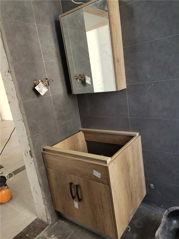 陽臺(tái)和衛(wèi)生間柜子安裝好啦,等著臺(tái)面安裝