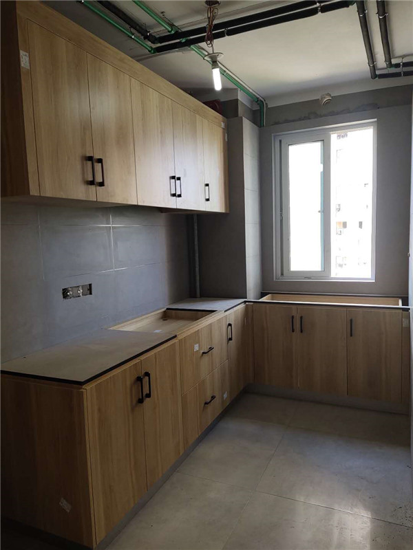 【小二跟單2869】蔚藍(lán)天地,雙飾面柜門加實(shí)木多層板柜體櫥柜等,安裝中