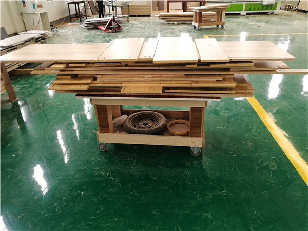 開始制作啦!專業(yè)設備裁板,沒有爆邊。板材使用平安樹實木多層板E0級制作,有高級的藍光防偽標識哦