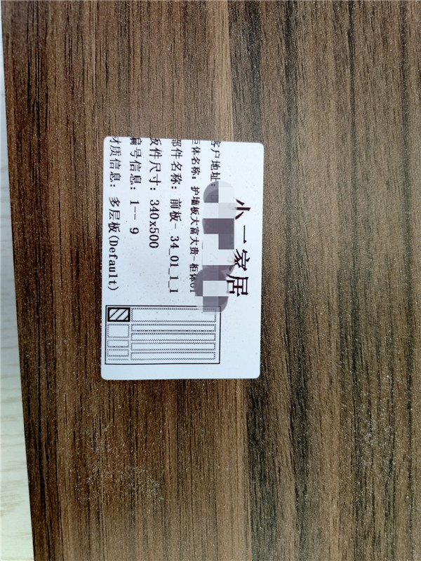 我家不管大小板都是四面封邊哦!每塊板上都貼有小標(biāo)簽,方便后期安裝師傅安裝,封邊條上都帶有“優(yōu)端”logo的哦!方便后期售后服務(wù)。