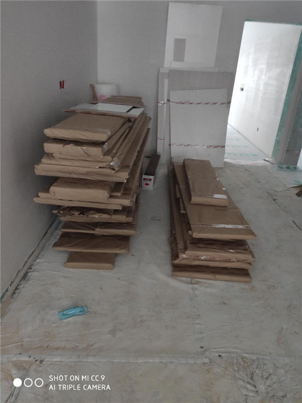 灶具、浴柜臺(tái)盆放置在現(xiàn)場(chǎng),后期臺(tái)面安裝需用到。柜子安裝好后進(jìn)入臺(tái)面測(cè)量環(huán)節(jié),臺(tái)面量完后一個(gè)星期內(nèi)送貨并安裝。