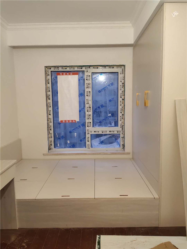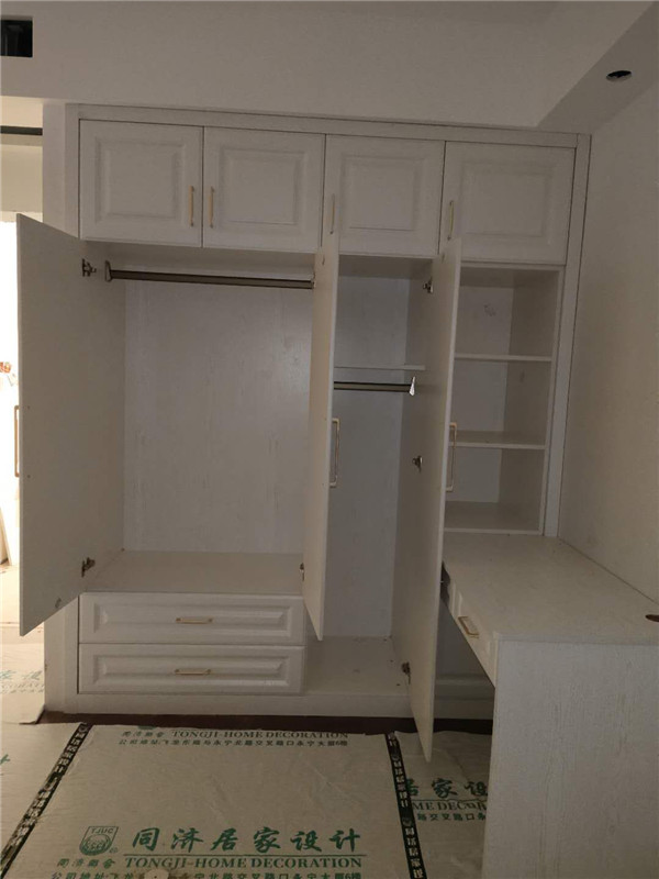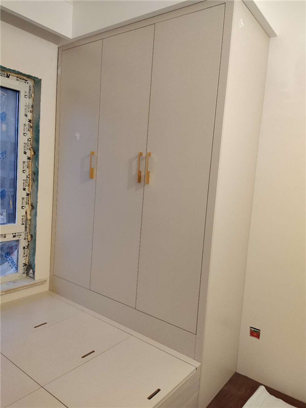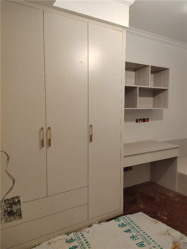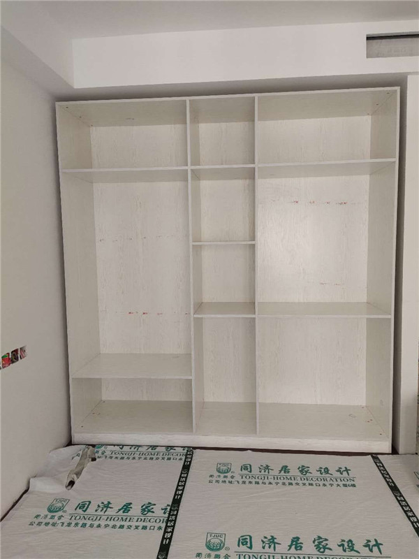 柜體已經(jīng)拼裝完畢,豎起來了,業(yè)主家柜體以淺色調(diào)為主,整體效果清爽干凈,在過兩天等柜門安裝好整體效果就出來啦!