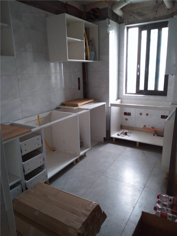 柜體大致都拼裝完了,就差柜門了,師傅加油咯!期待最后的效果