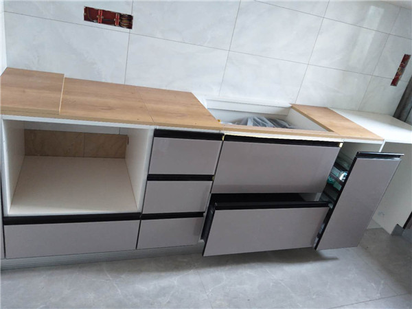 【小二跟單2734】蔚藍(lán)天地,晶鋼門柜門加實(shí)木多層板柜體櫥柜等,安裝中