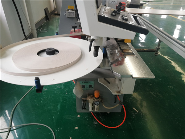 開始封邊啦,封邊采用法國波士熱熔顆粒膠,設(shè)備溫度達(dá)到200°C封出來的邊牢固,