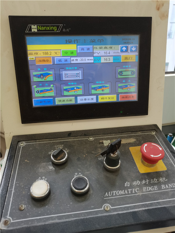 膠水采用美國波士熱熔顆粒膠,當設(shè)備溫度達到180℃以上就好開始封邊了。我家不管大小板都是四面封邊哦!
