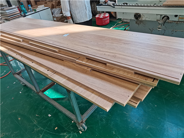 開始制作啦!專業(yè)設(shè)備裁板,板材使用平安樹實木多層板E0級制作,有高級的藍光防偽標識哦,邊口都是直的,沒有爆邊的情況,