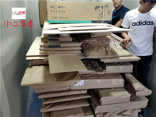 后面裝到客戶家還有我家柜子每塊板都是整個打包起來的,以防運輸