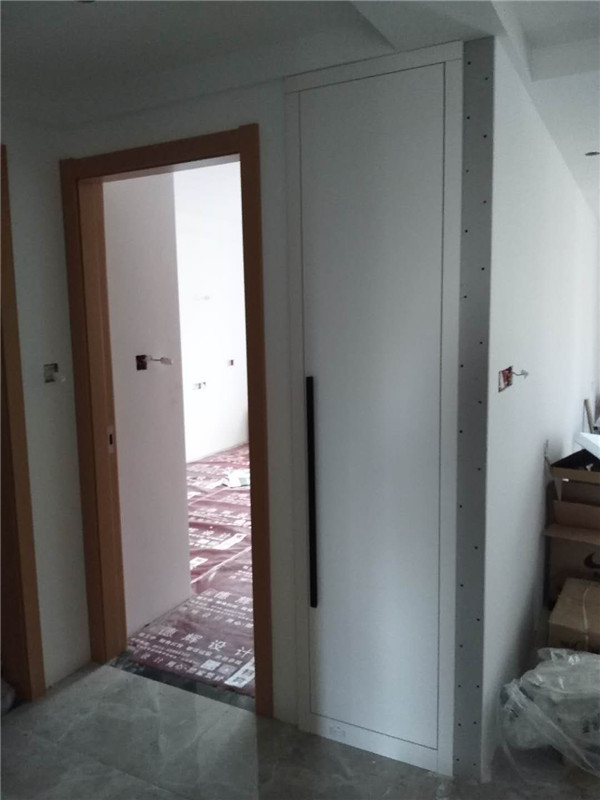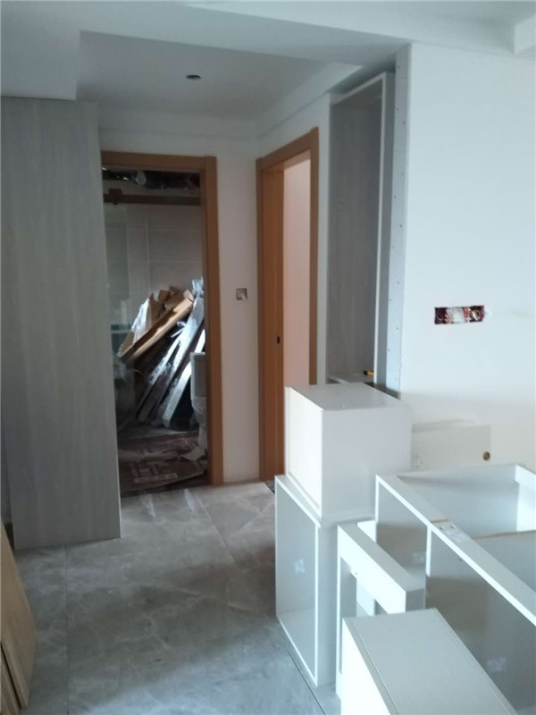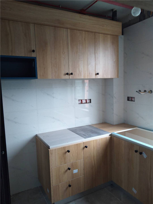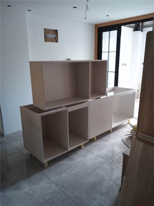 一天的時間,師傅柜體基本拼裝完畢,個別柜體已經(jīng)豎起來還未固定,