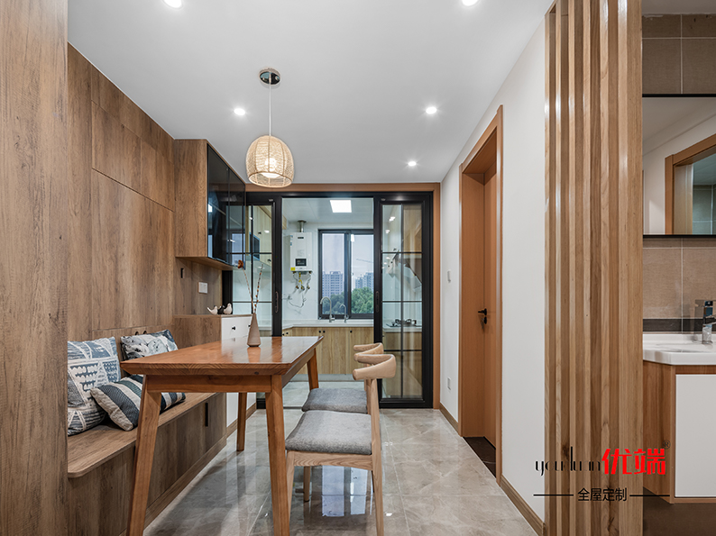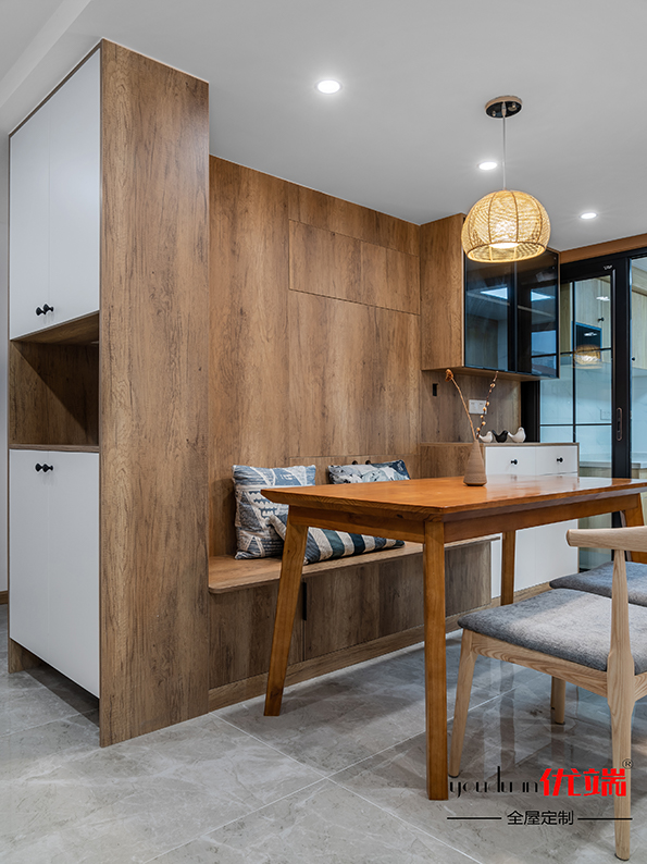柜子安裝完畢啦!客廳廚房以原木色配白色為主,給人一種溫馨放松的家庭氛圍。鞋柜連著卡座餐邊柜,充分利用空間,收納儲物美貌兩不誤。