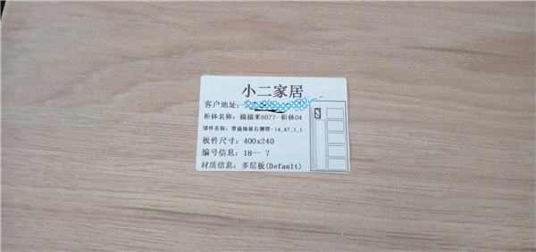 每塊板上都貼有小標(biāo)簽,方便后期安裝師傅安裝,封邊條上都帶有“優(yōu)端”logo的哦!方便后期售后。