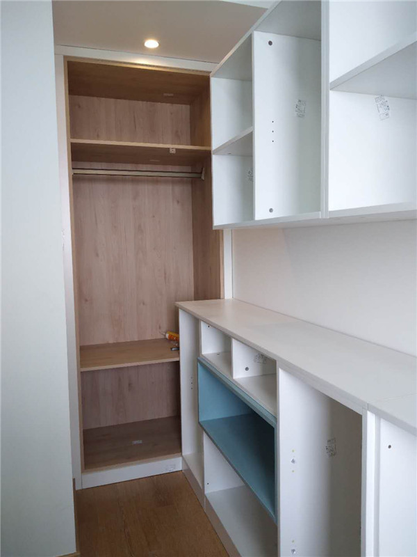 【小二跟單2885】陽光100,雙飾面門板+實(shí)木多層板柜體衣柜等,安裝中