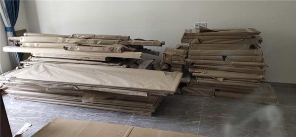 每塊板上都貼有小標(biāo)簽,方便后期安裝師傅安裝,封邊條上都帶有“優(yōu)端”logo的哦!方便后期售后。拆板也在同步進(jìn)行中。