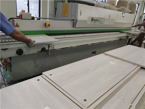 拆板封邊同時進行,封邊采用的是1.0厚的pvc封邊條,方便前口倒圓弧,整體效果即美觀又不容易磕碰到。