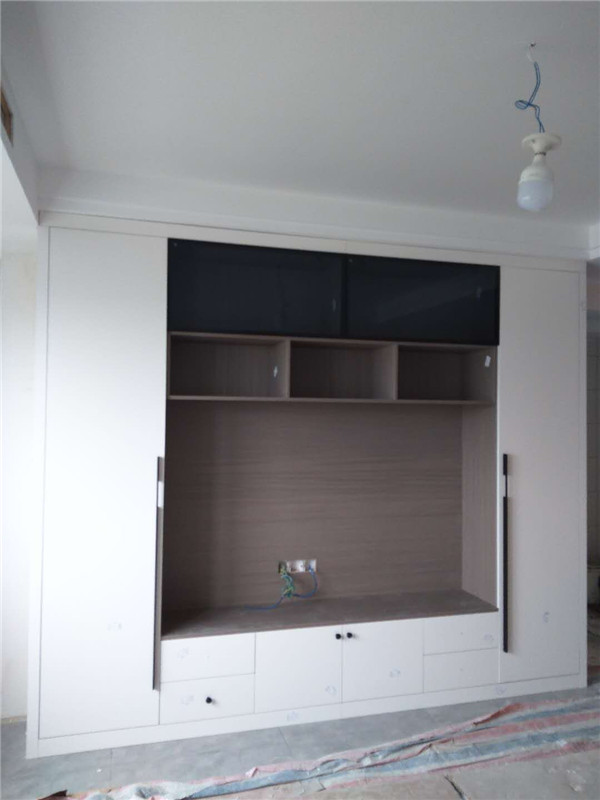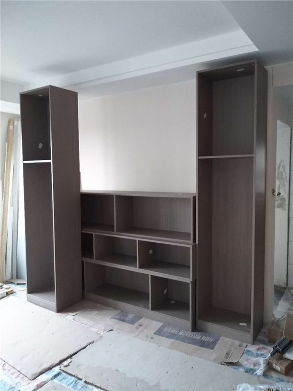 插槽背板離墻面1.8公分,防止使用時間常出現(xiàn)柜體發(fā)霉的現(xiàn)象。拆好的板師傅都整整齊齊放在墊板上,
