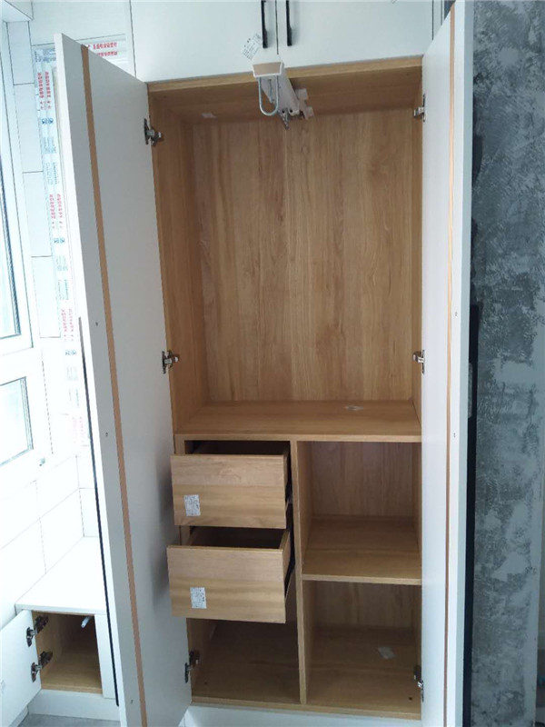 諾米鉸鏈,索菲亞靜音衣桿,防塵角跟活動層板孔塞,廚房水槽陽臺柜下面都鋪有錫紙,讓客戶看了安心,用了放心。